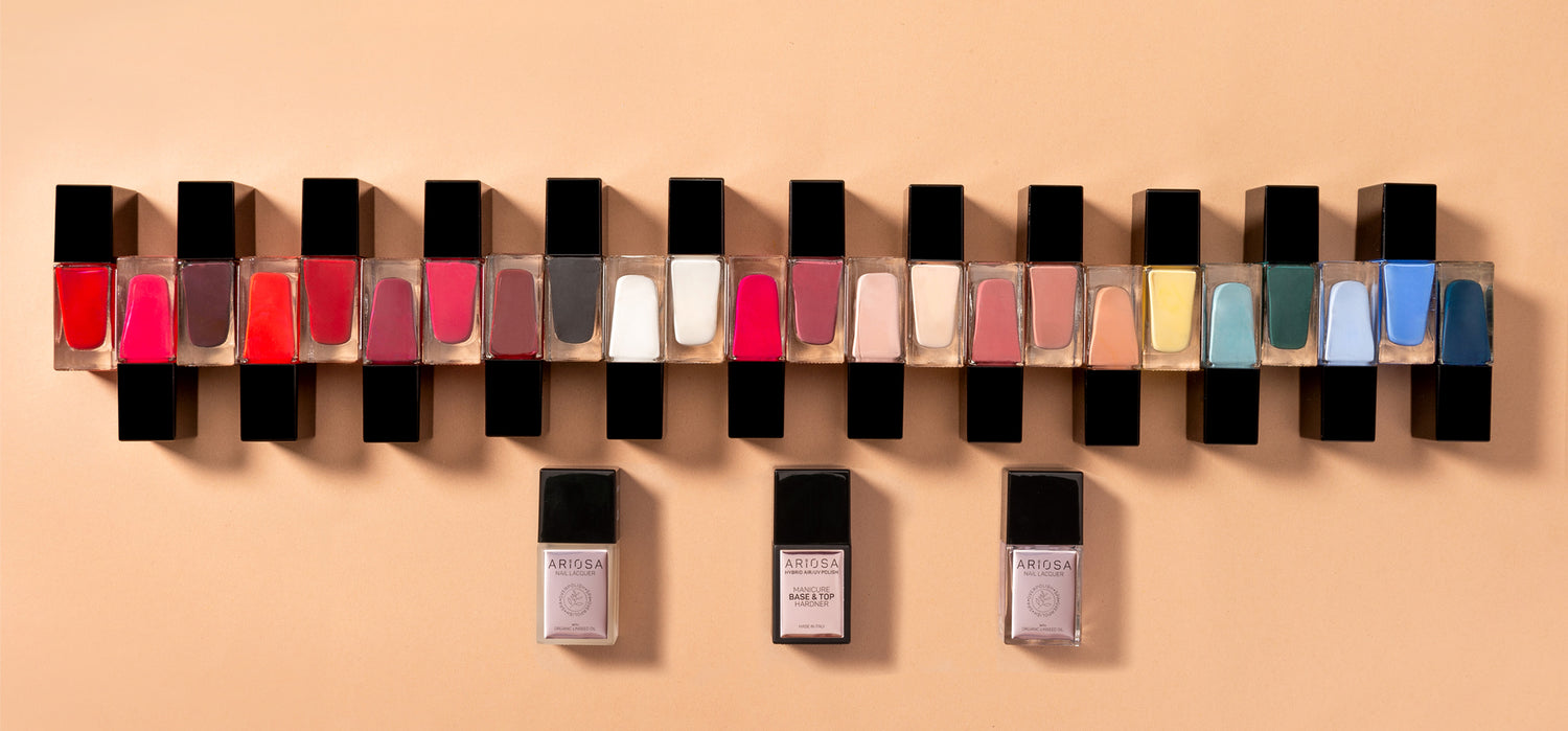 Gli smalti colorati ARIOSA disponibili sono in color-match con i rispettivi colori della linea di gel semipermanenti OVERPOLISH Soak Off Color